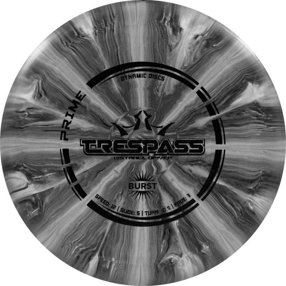 The wide rim and Prime plastic construction of the Dynamic Discs Prime Burst Trespass Disc Golf Driver makes this disc perfect for maximum distance and incredible feel.